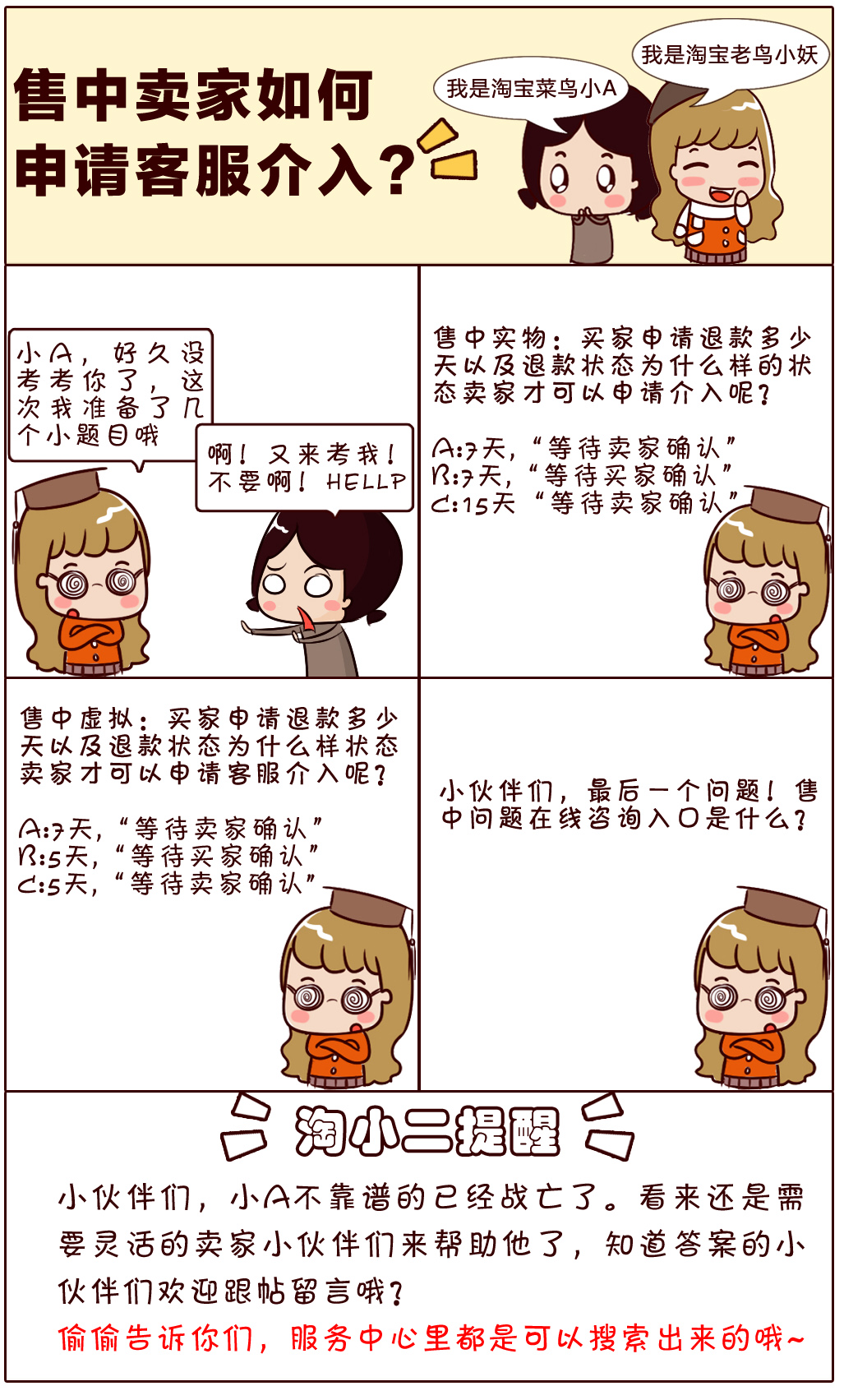 桃子导读:今天小A要考试了,需要各位给力的卖家小伙伴帮助,快来一起