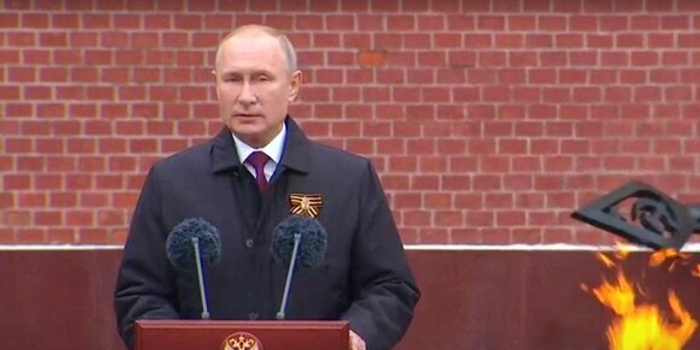 当地时间5月9日上午,俄罗斯总统普京向位于红场西北侧,克里姆林宫红墙外的无名烈士墓献花,并在“长明火”前向民众致辞。